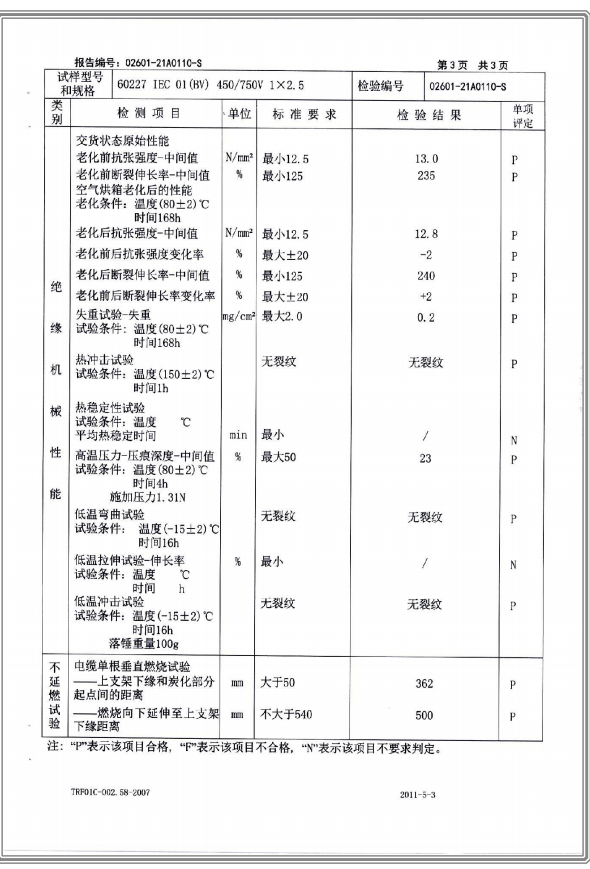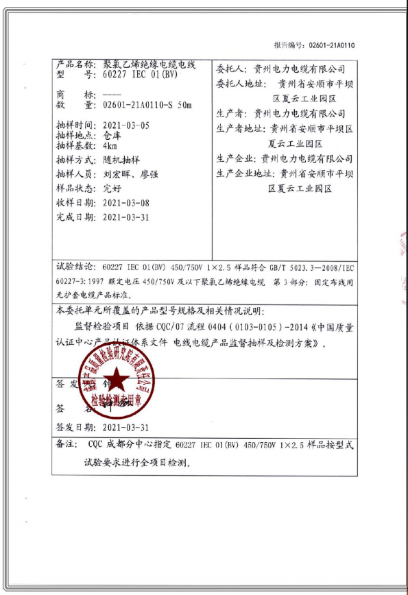 聚氯乙烯乙烯絕緣電纜電線 國家強制性產(chǎn)品試驗認(rèn)證報告